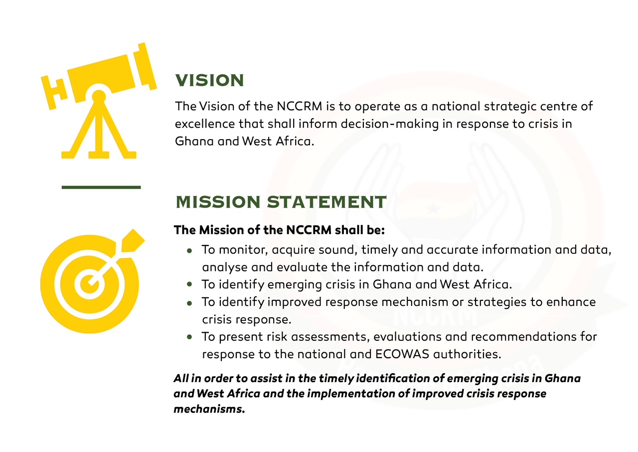 The Centre is to assist in the timely identification of emerging crisis in Ghana and West Africa and the implementation of improved crisis response mechanism.